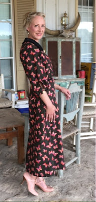 I actually started this reproduction November 2014. There are times when I progress with a project, and am not completely convinced I made the best fabric choices, and so I stall....and stall....then stall some more. (Cue the confessional organ) I prefer working with chiffons, rayons, and similar fabrics that have a very fluid drape. I kept going back and forth about the fabrics for this dress. I knew I would most likely have to use a crisper fabric to keep the intention of this as a "day dress", but I had that 1930s chiffon drape dancing through my head. I finalized on this cotton butterfly print with black peachskin for the contrast.